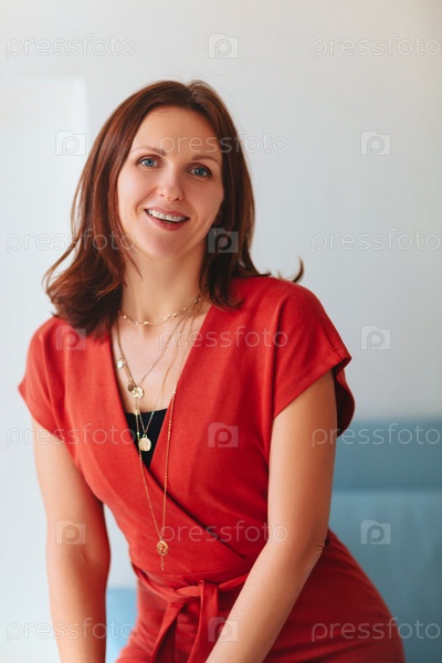 Счастливая женщина средних лет смотрит в камеру