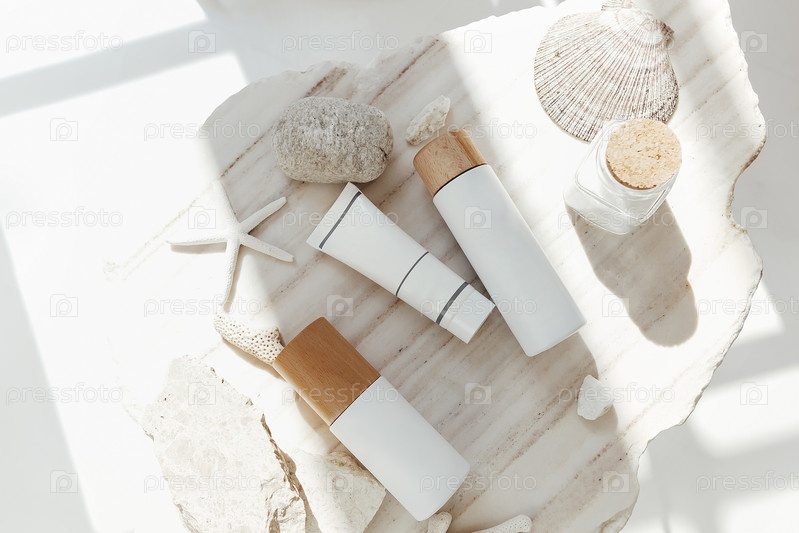 Косметические принадлежности рядом с морскими минералами