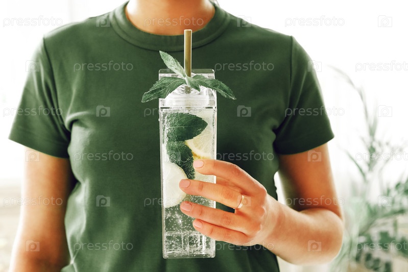 Свежая вода с лаймом и мятой, коктейль, детокс-напиток, лимонад в многоразовых бутылках