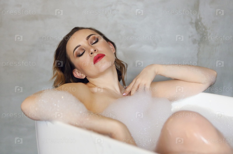 Счастливая молодая женщина расслабляется в ванне