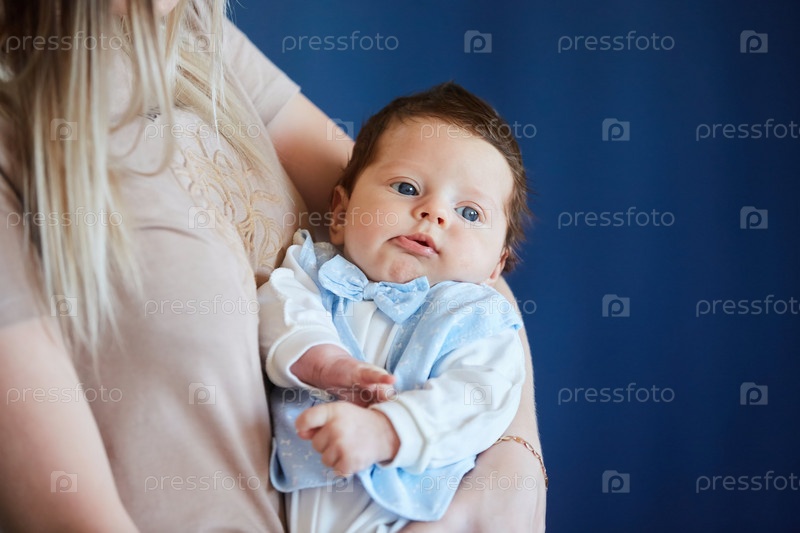 Маленький новорожденный мальчик на руках у женщины. Понятие материнства и детства