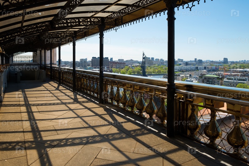 Вид со смотровой площадки Храма Христа Спасителя в солнечный весенний день
