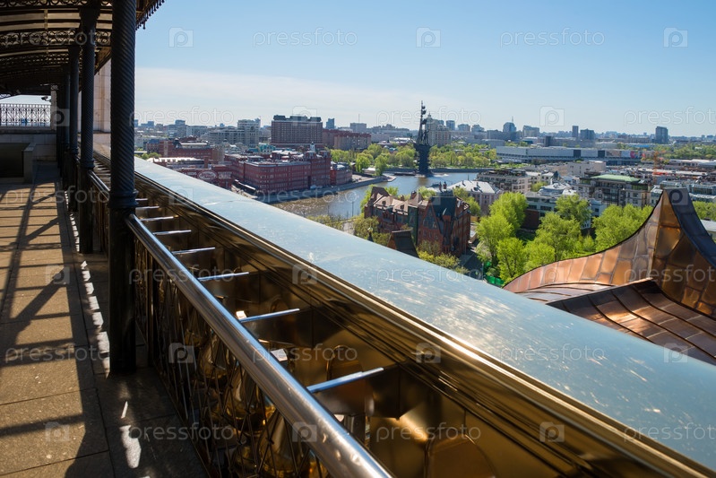Вид со смотровой площадки Храма Христа Спасителя в солнечный весенний день