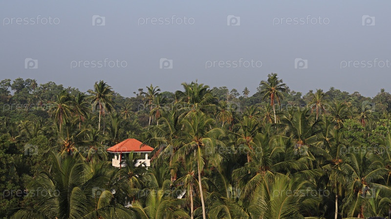 Дом с красной крышей на фоне пальм