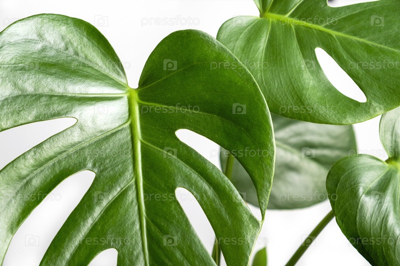 Крупный план листьев экзотического комнатного растения монстера лиана