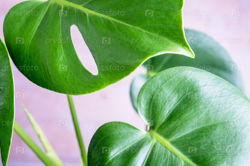 Крупный план листьев экзотического комнатного растения монстера лиана