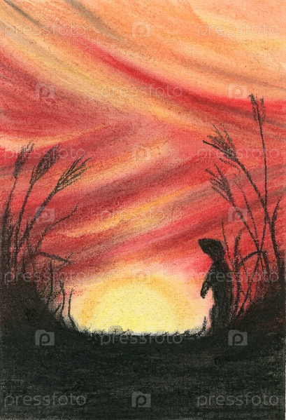 Софтпастель - пейзаж - закат - животное - суслик