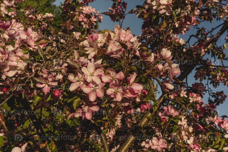 Цветущая розовая яблоня весной