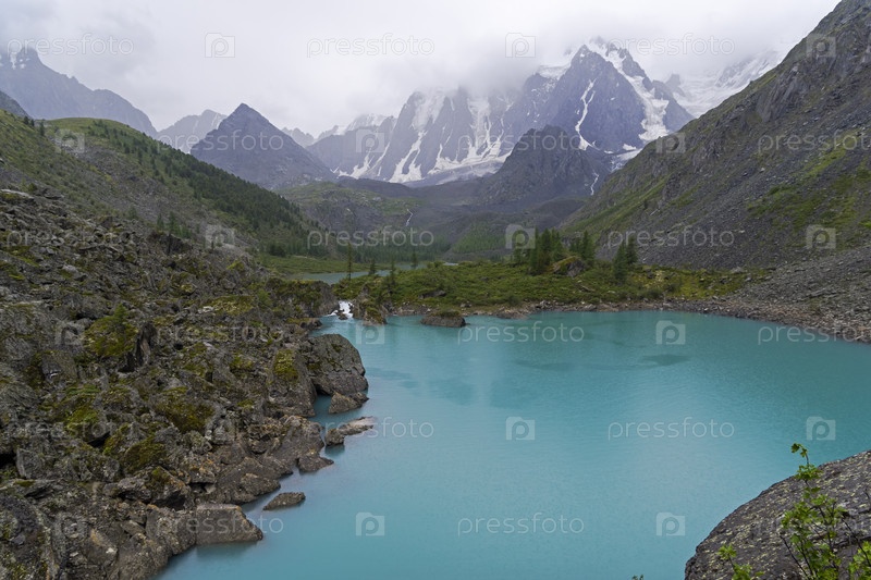Верхнее Шавлинское озеро в дождливый день. Август, Горный Алтай