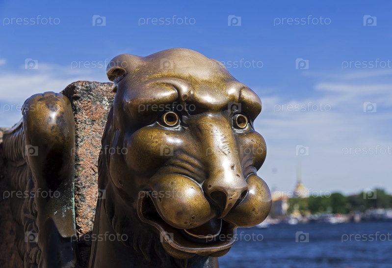 Бронзовый грифон на Университетской набережной Невы. Санкт-Петербург, Россия