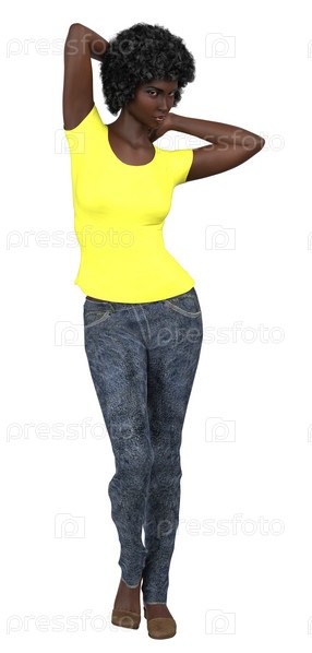 3D афро-женщина в желтой рубашке