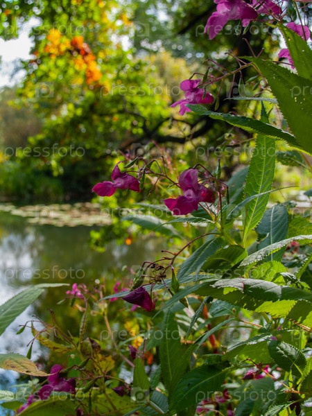 Красивые цветы на берегу озера, beautiful flowers on the lake shore