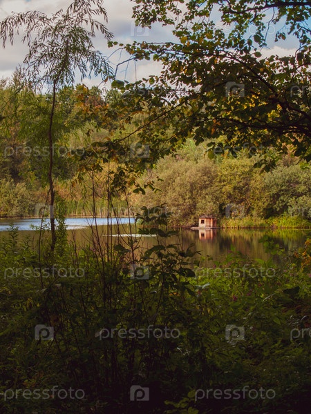 Вид на озеро в парке, view of the lake in the park