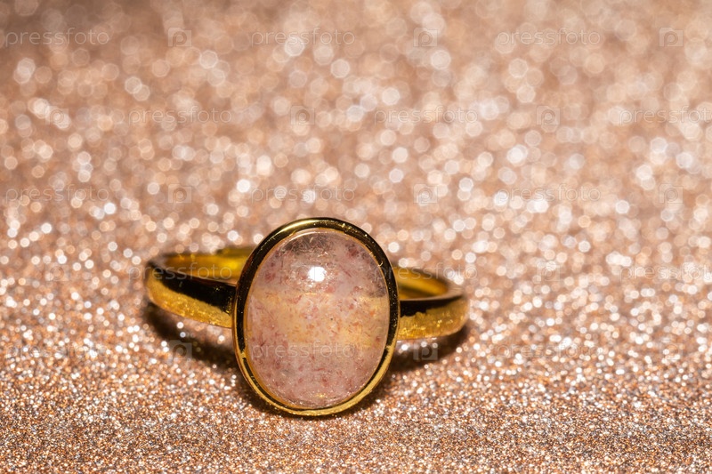 Золотое кольцо с клубничным кварцем