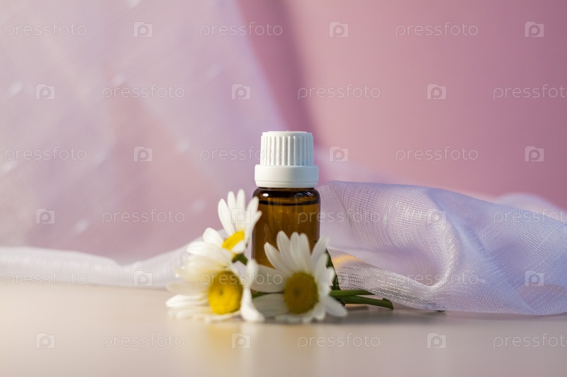Бутылка без масляной этикетки. Прозрачная стеклянная бутылка на бежево-розовом фоне. Натуральный косметический продукт. Баннер продукта. Пространство для текста и дизайна