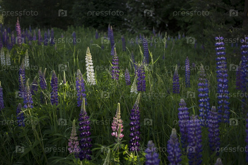 Цветы люпина в свете вечернего солнца