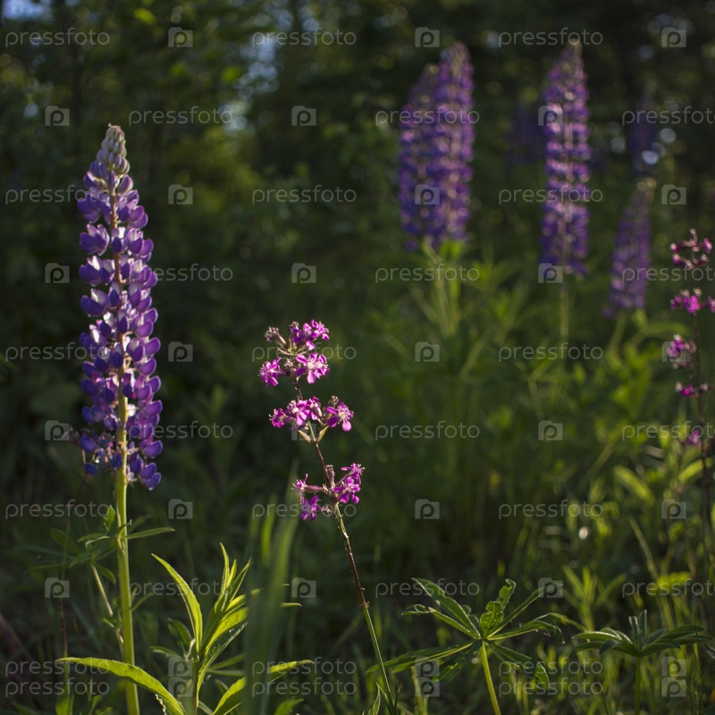 Цветы люпина в свете вечернего солнца