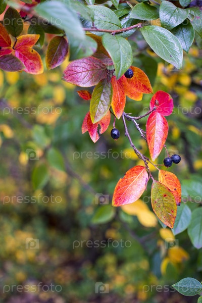 Яркий осенний фон листья и плоды куста аронии