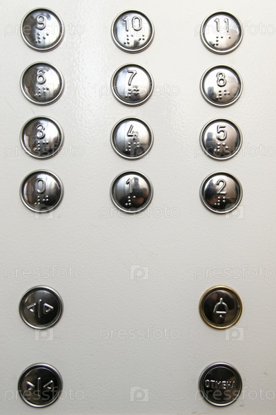 Металлические кнопки с нумерацией на панели лифта