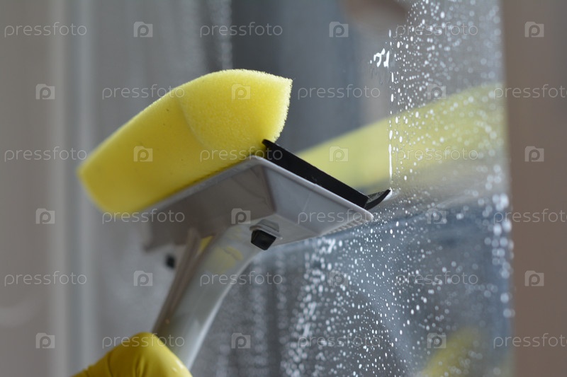 Мытье окон специальной шваброй