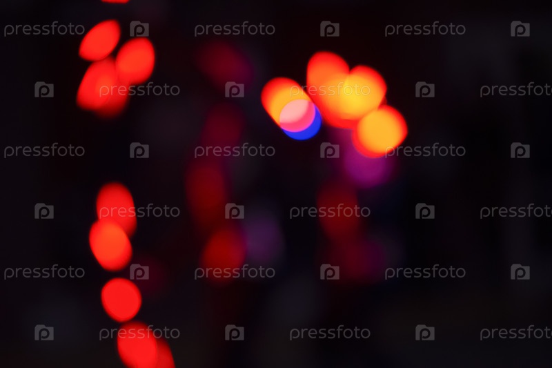 Желтые, красные и синие редкие пятна боке на черном фоне