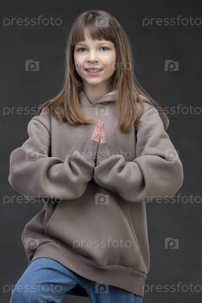 Красивая маленькая девочка показывает жест из йоги и улыбается