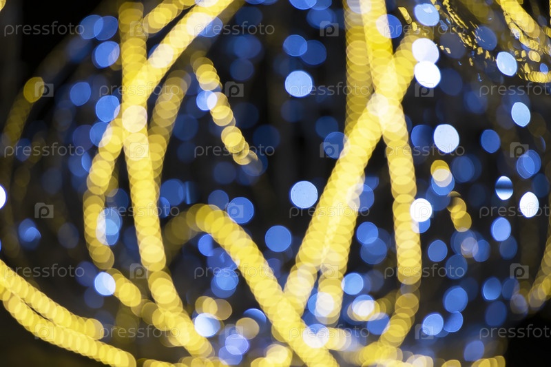 Пятна синего и золотого боке на темном фоне
