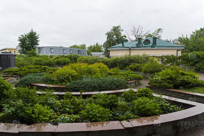 Морозовский сад - старый парк в Басманном районе Москвы. Лето, облачный день