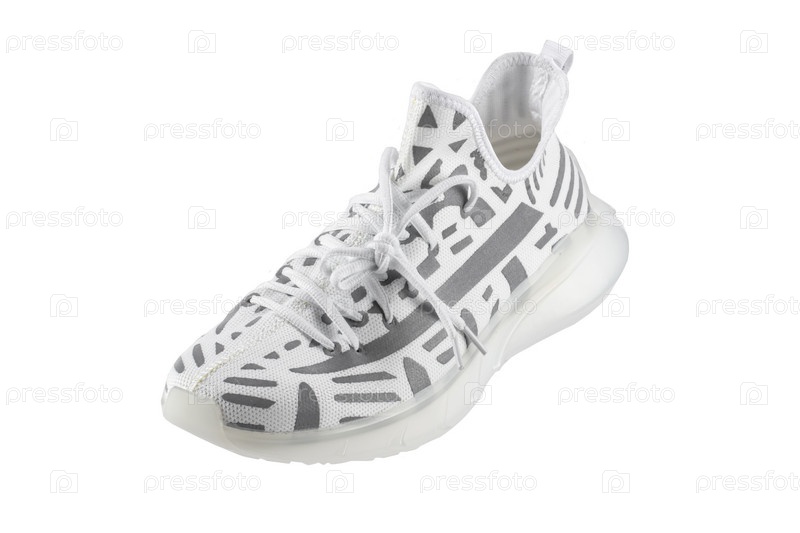 Спортивные туфли. Кроссовки из белой ткани с серыми светоотражающими полосками