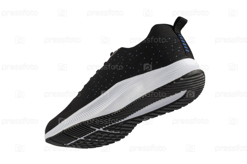 Черные кроссовки из ткани с белой подошвой на белом фоне. Спортивные туфли