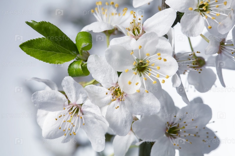 Ветка цветущей яблони с крупными белыми цветами