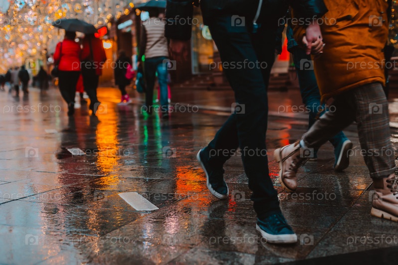 Дождливая ночь в большом городе, отблески огней на мокрой поверхности дороги