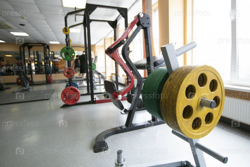 Спортивный тренажер с металлическими гирями для штанги в тренажерном зале