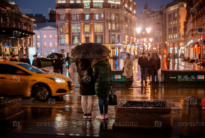 Мокрый ночной город улица дождь Боке отражение яркие разноцветные огни лужи тротуар Автомобиль
