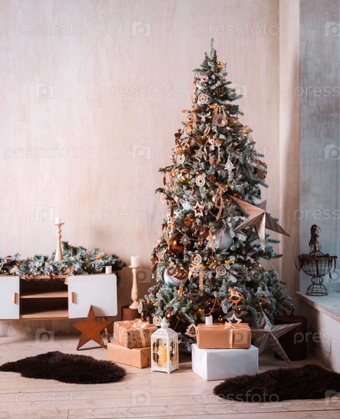 Празднично украшенная елка. Фон для счастливого нового 2020 года. свободное место для текста