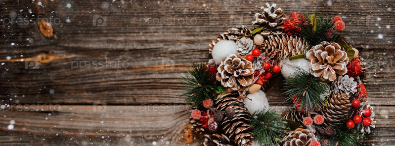 Новогодний венок из ели и елочные украшения
