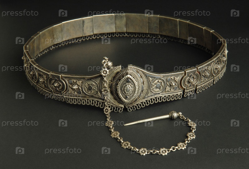 Древний антикварный пояс на черном фоне. Среднеазиатские винтажные украшения