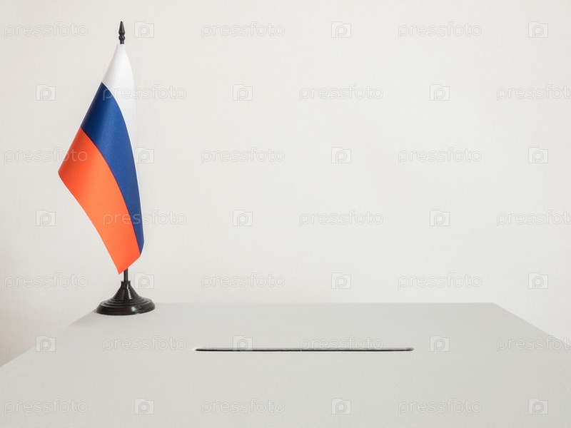 Урна для голосования с национальным флагом России. Президентские выборы в 2018 году