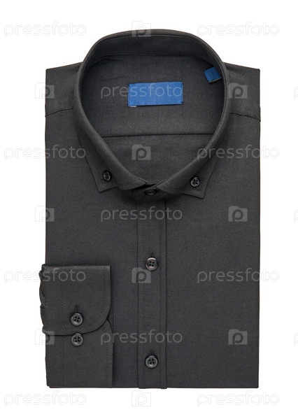Черная сложенная рубашка на белом фоне, вид сверху