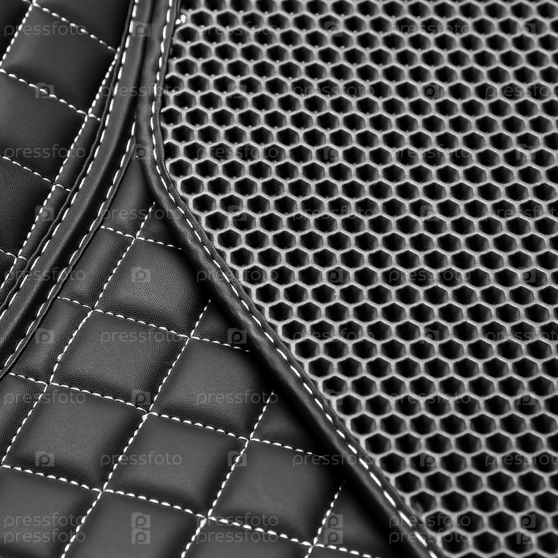 Текстура черного кожаного фона с квадратным узором и стежком, макрос