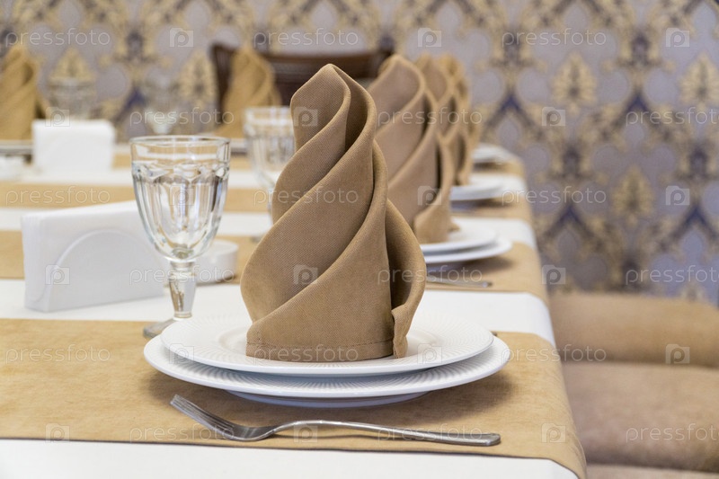 Сервировка банкетного стола в роскошном ресторане в бежево-белом стиле