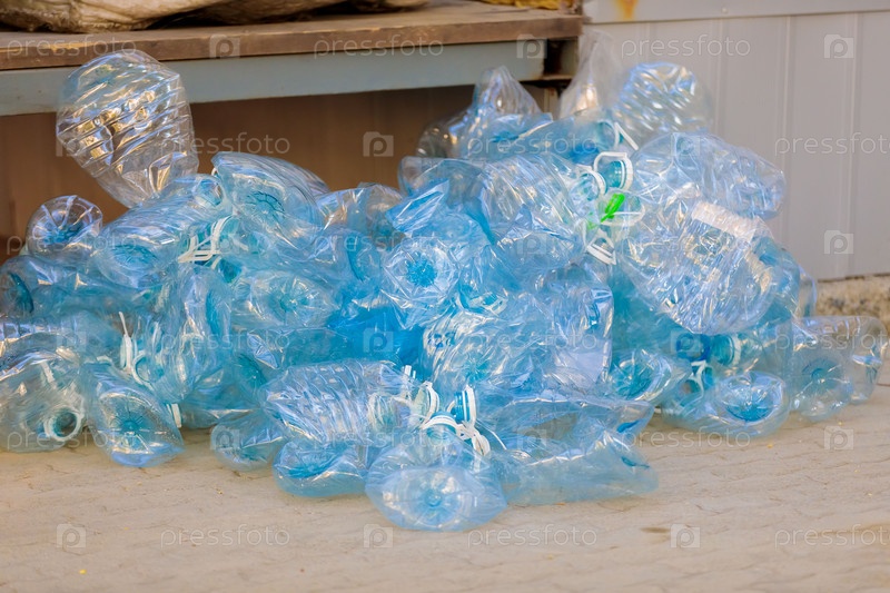 Куча мусора из непригодных скомканных пластиковых бутылок