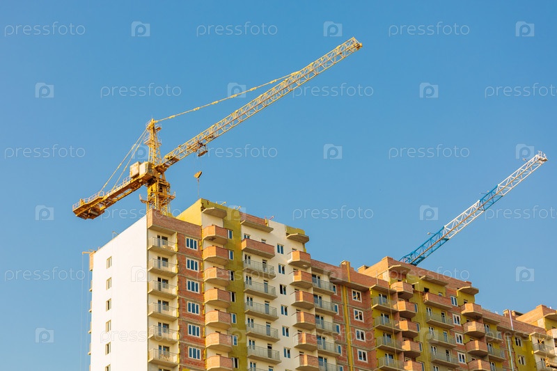 Два крана на строительстве многоэтажного жилого дома