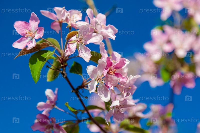 Цветущая дикая яблоня с розовыми и белыми цветами