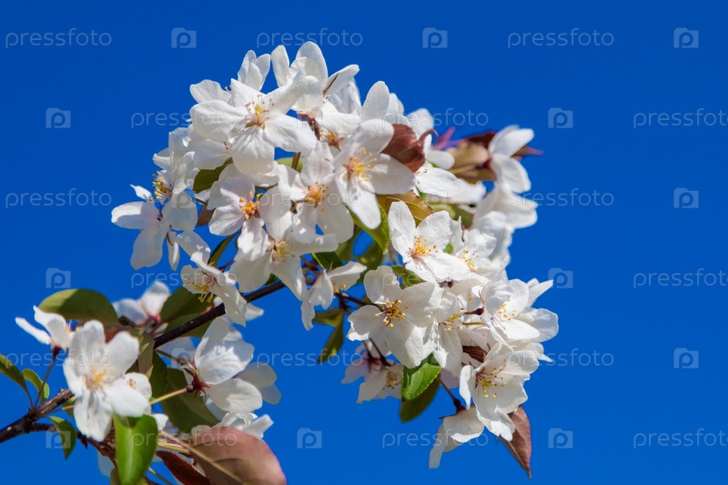Цветущая дикая яблоня с розовыми и белыми цветами