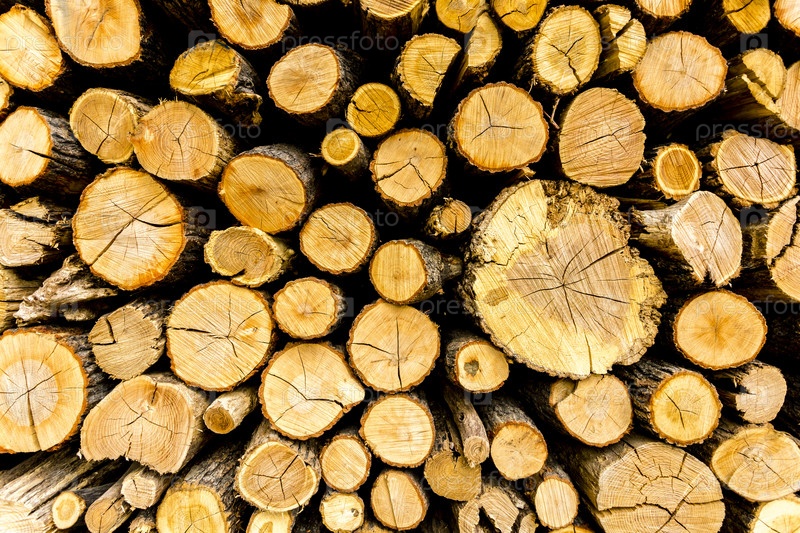 Аккуратные рубленые дрова из сосны, сложенные в поленницу