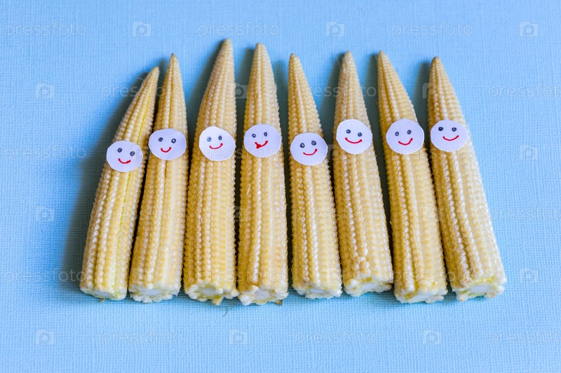 Детская кукуруза с забавными лицами. Здоровая органическая пища