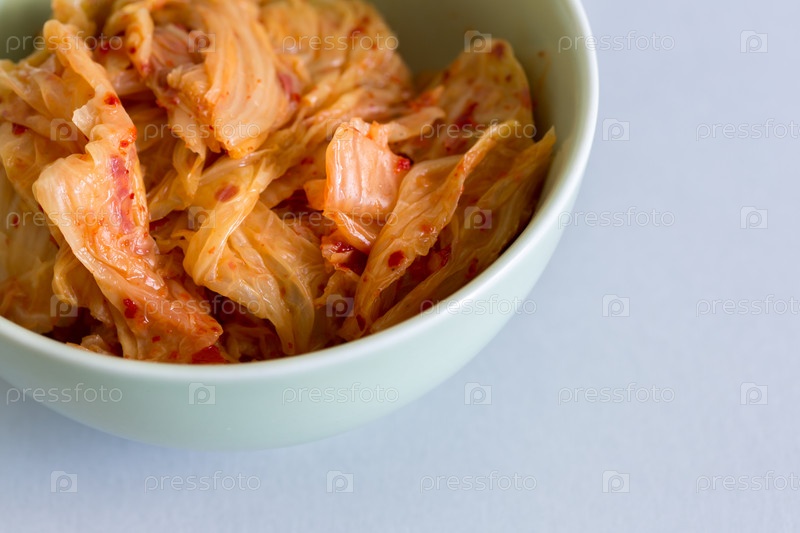 Кимчи из капусты в миске, очень популярная корейская традиционная ферментированная еда