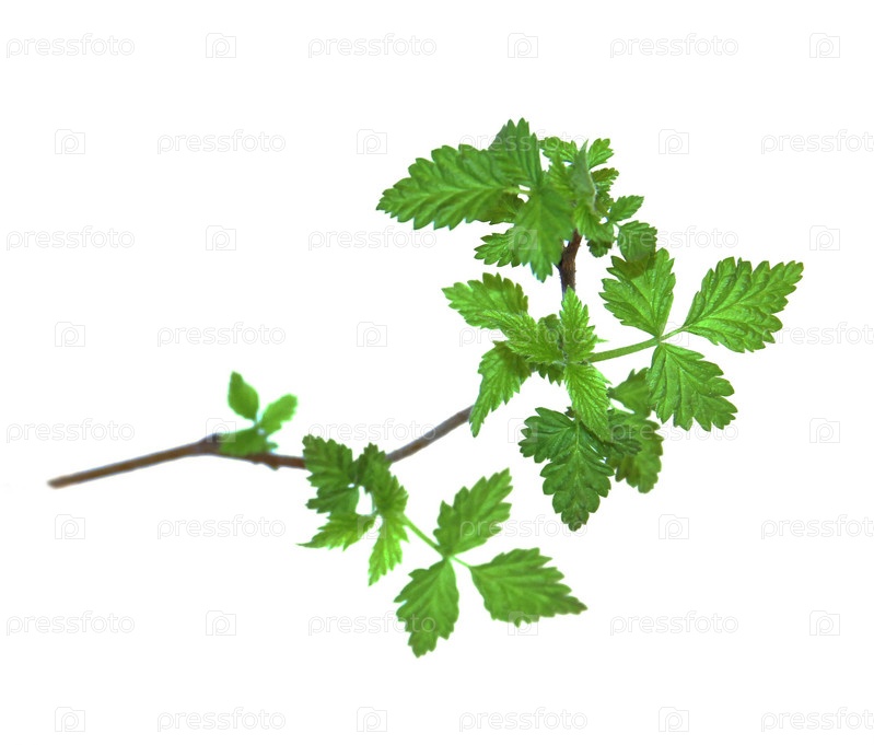 Лист молодой зеленой ветки малинового куста изолированные листья на белом фоне для альбома для вырезок, рисунок объекта, весенний лист