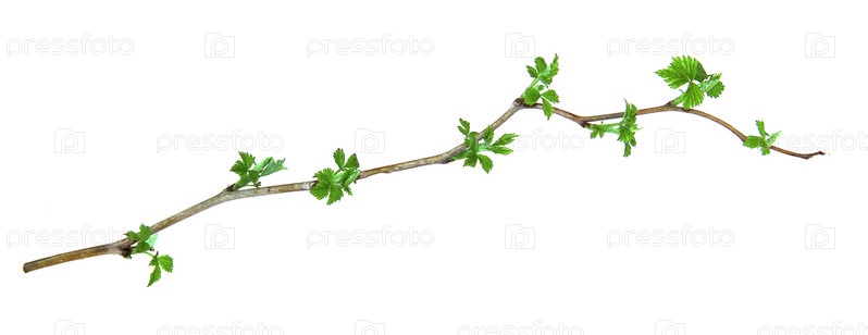Лист молодой зеленой ветки малинового куста изолированные листья на белом фоне для альбома для вырезок, рисунок объекта, весенний лист